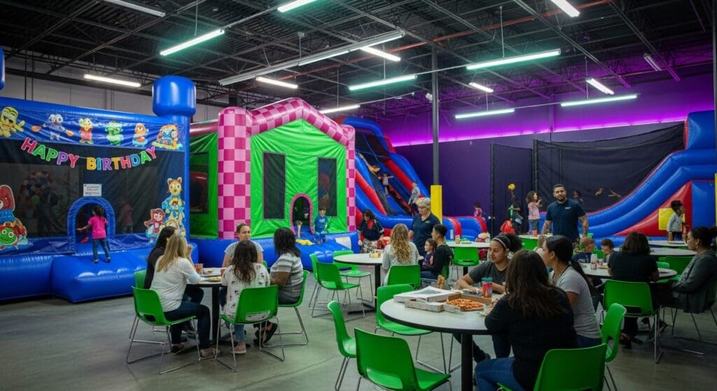 Welcome to the all-new Kid Zone featuring interactive Jumplings fun pads, a color-reactive light floor, a towering 3-story jungle gym, free-play games, a giant 14-foot chicken bounce house, and endless adventures for young explorers!
